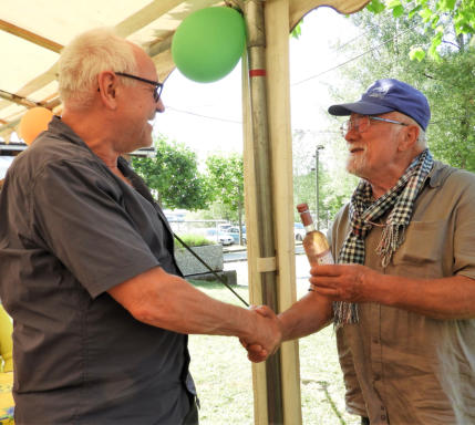 Bei sehr guten Wetterverhältnissen trafen wir uns wieder mit dem Boule-Club Friedrichshafen.Nach dem Empfang durch den Vorsitzenden des Boule-Club Bernd Ammann und einer kurzen Botschaft unserer Präsidentin Ulla Müller von Kralik gab es einen Einstand mit Aperitif und Häppchen.
